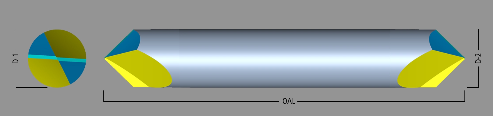 - Shape / Type: 2 Flute Double Ended Chamfer Mill