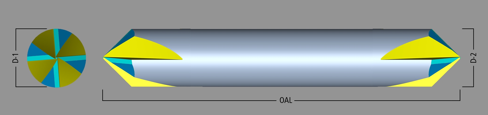 • Shape / Type: 4 Flute Double Ended Chamfer Mill